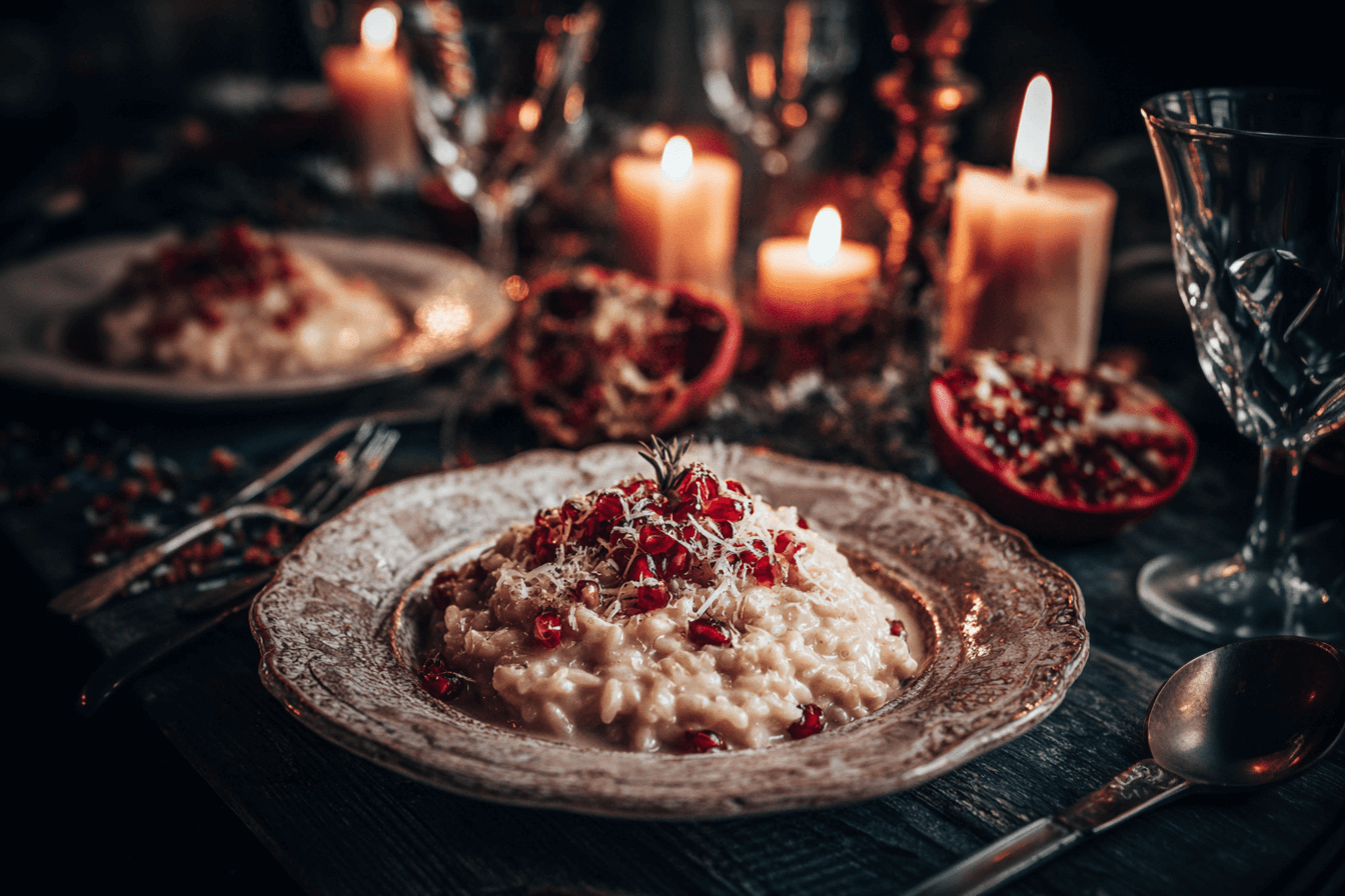 Risotto melagrana e pecorino per cena a lume di candela